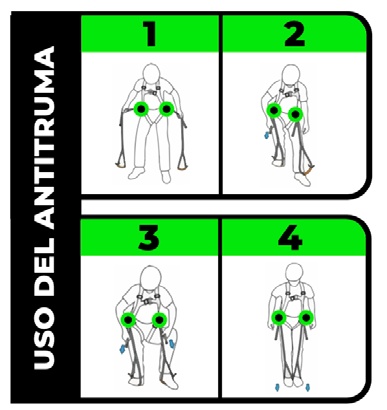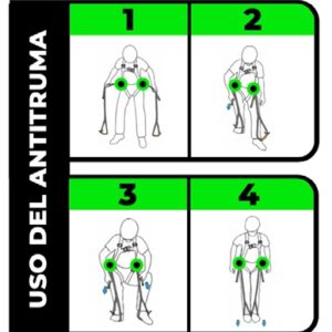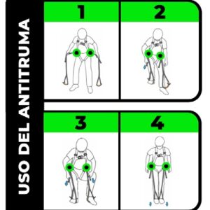 Fabricada en material poliéster, con un largo de 1,30m y ancho de 30mm, con hebilla metálica que regula el largo de la cinta, óptimo para que el usuario en suspensión logre liberar la presión producida por el síndrome del arnés o síndrome ortostático. Medidas – Largo: 1,30 mts – Ancho: 30 mm NORMAS Y CERTIFICACIONES Cumple con TESTEO VOLUNTARIO en laboratorio LENOR S. A “resistencia desgarro y tracción”. MODO DE USO – El trabajador despliega la cinta anti trauma y se pone de pie sobre ella, esto da tiempo adicional al equipo de rescate. De esta manera, la circulación de la sangre se mantiene lo más normal posible y se evita que ésta se acumule en las piernas
