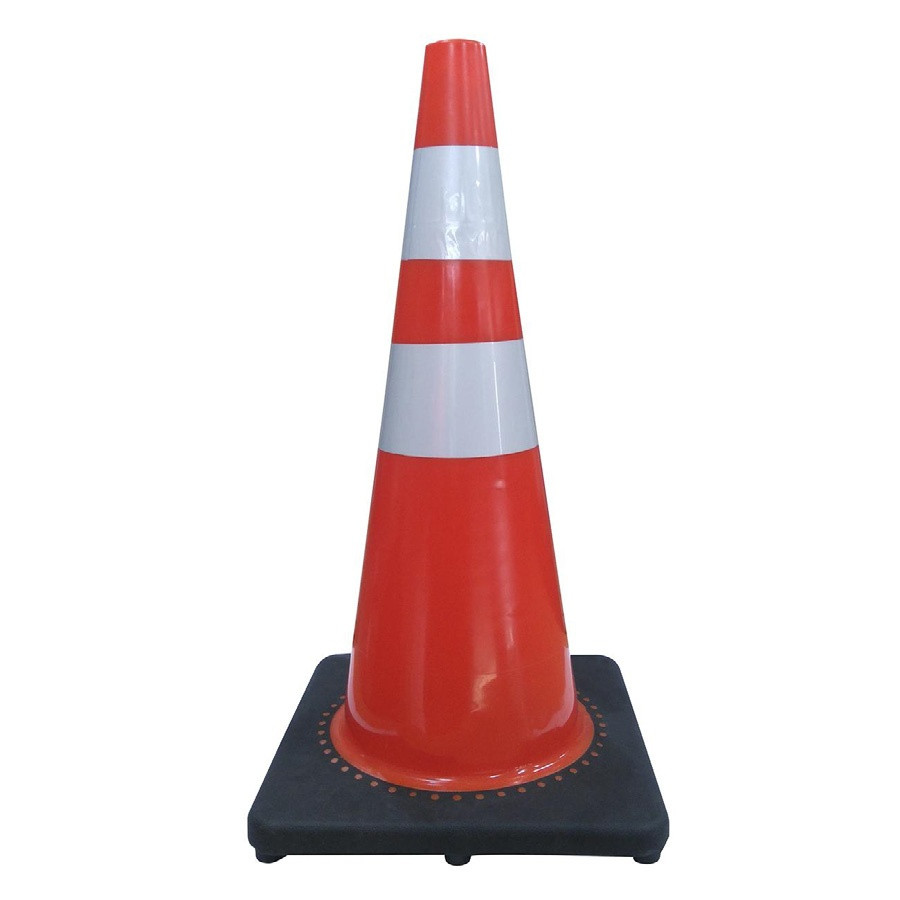 CONO SEÑALIZACIÓN REFLECTANTE 36″ BASE PESADA . CARACTERÍSTICAS – Completamente hecho de material de PVC, es flexible y puede soportar la presión de los coches. – Doble cinta reflectante. – 36” de alto. – Base pesada. – Mezclado con pigmento