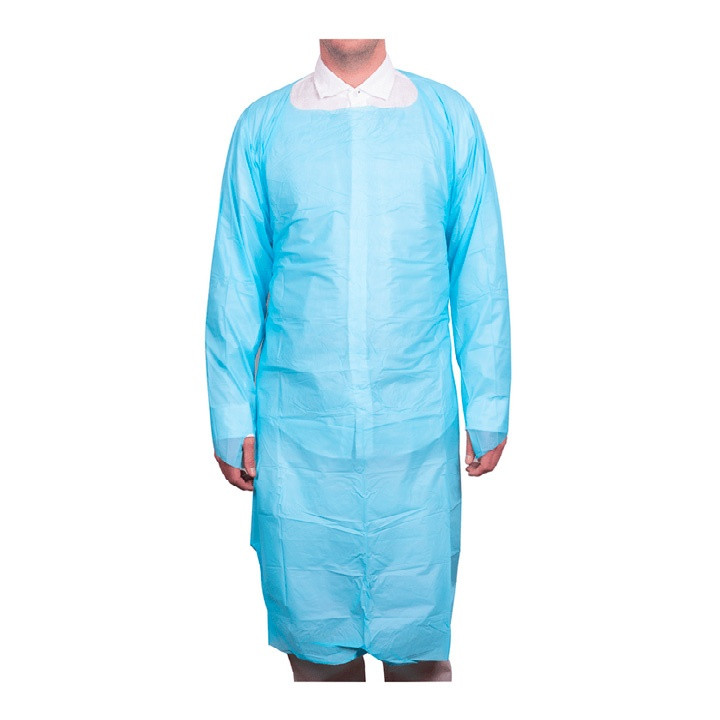 Pechera Bata Plastica desechable 116 x 188 con Mangas y Ojal Azul