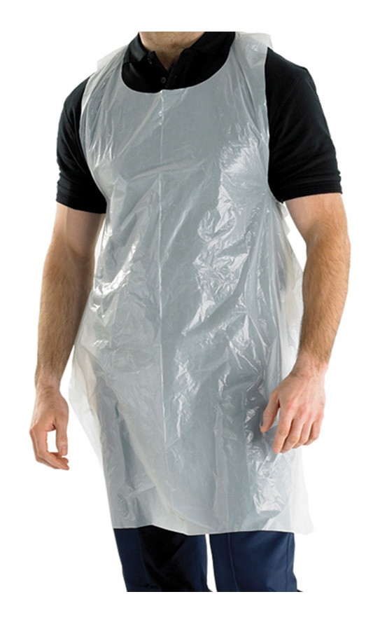 PECHERA DESECHABLE PLÁSTICA HDPE BOLSA 100 UNIDADES . TALLAS ESTÁNDAR BOLSA DE 100 UNIDADES DESCRIPCIÓN Elemento de protección personal impermeable apto para riesgos físicos y/o químicos. Brinda protección ante derrames y/o salpicaduras en ambientes clínico-hospitalarios, laboratorios e industrias alimenticias, técnicas